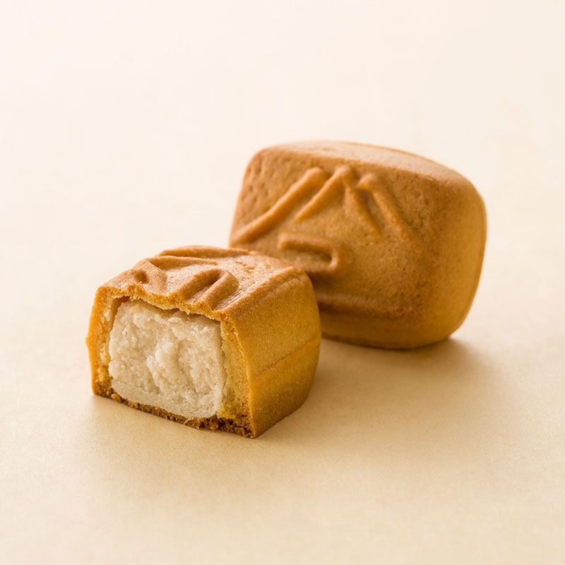 口溶けの良い自家製白こし餡を、米粉とアーモンドの香ばしい皮で包み焼き上げた素朴なお菓子です。小ぶりで食べやすく、富士山の模様が型押ししてあります。