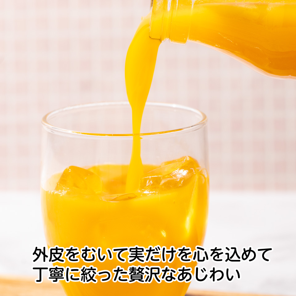 浜松市三ヶ日町の自社農園で、秋に収穫したみかんを使ってジュースにしました。 外皮をむいて中の果肉だけを搾った100%のこだわりジュースです。 果肉の甘味と程よい酸味が口の中に広がります。 無添加なので小さな子供が飲んでも安心できる商品です。