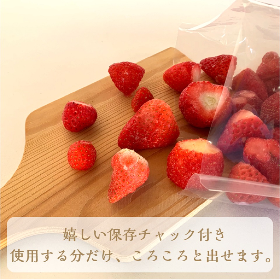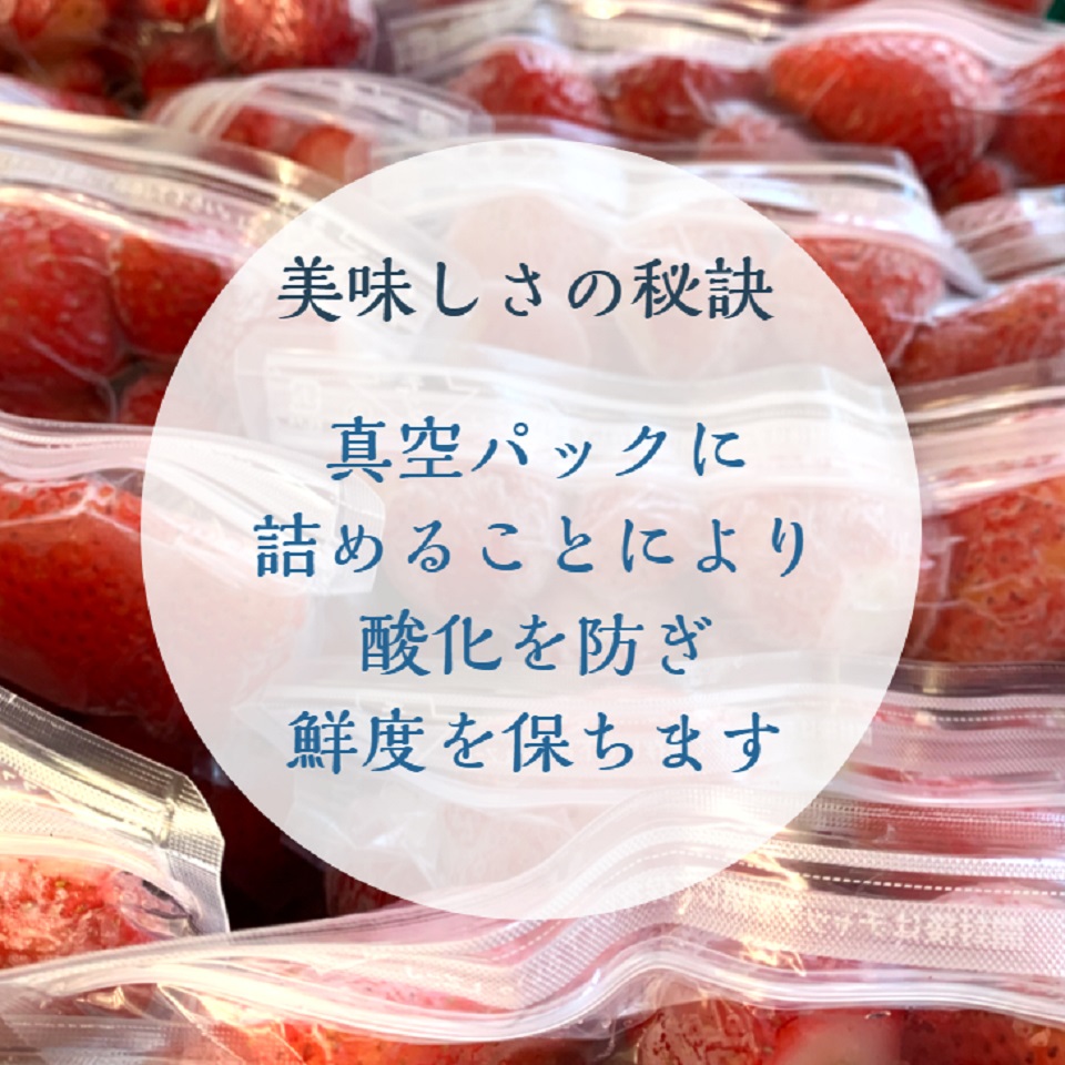 冷凍いちごにしておいしいままお届けします。