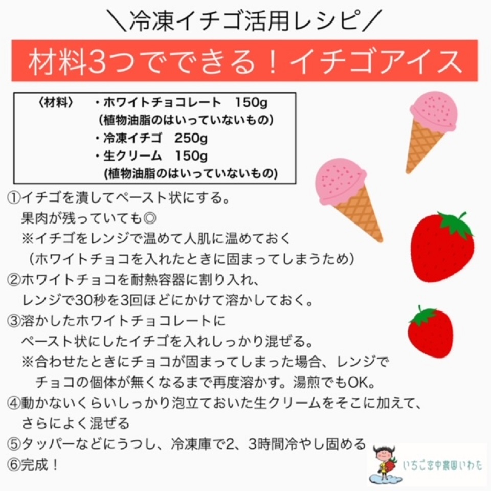 いちご空中農園いわたの冷凍いちごです