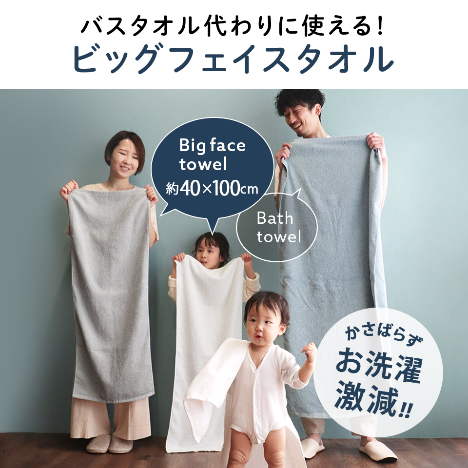 ビッグフェイスはお風呂上がりも十分お使いいただける吸水力と、ふかふかのボリュームが大人気です!