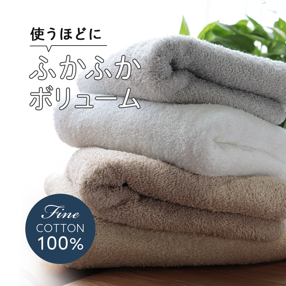 ふかふかのボリュームと天然水を使用して晒をかける事で生まれる柔らかさと吸水性の良さで大人気!シリーズ累計1,000万枚以上販売のロングセラータオルです。