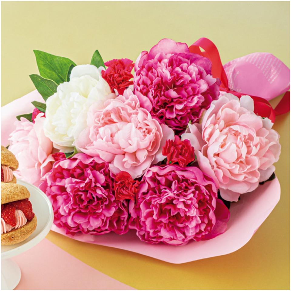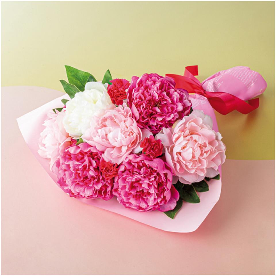 繊細で柔らかな花びらが豪華。ふわりとした香りのしゃくやくのブーケが、感謝の思いを伝えます。