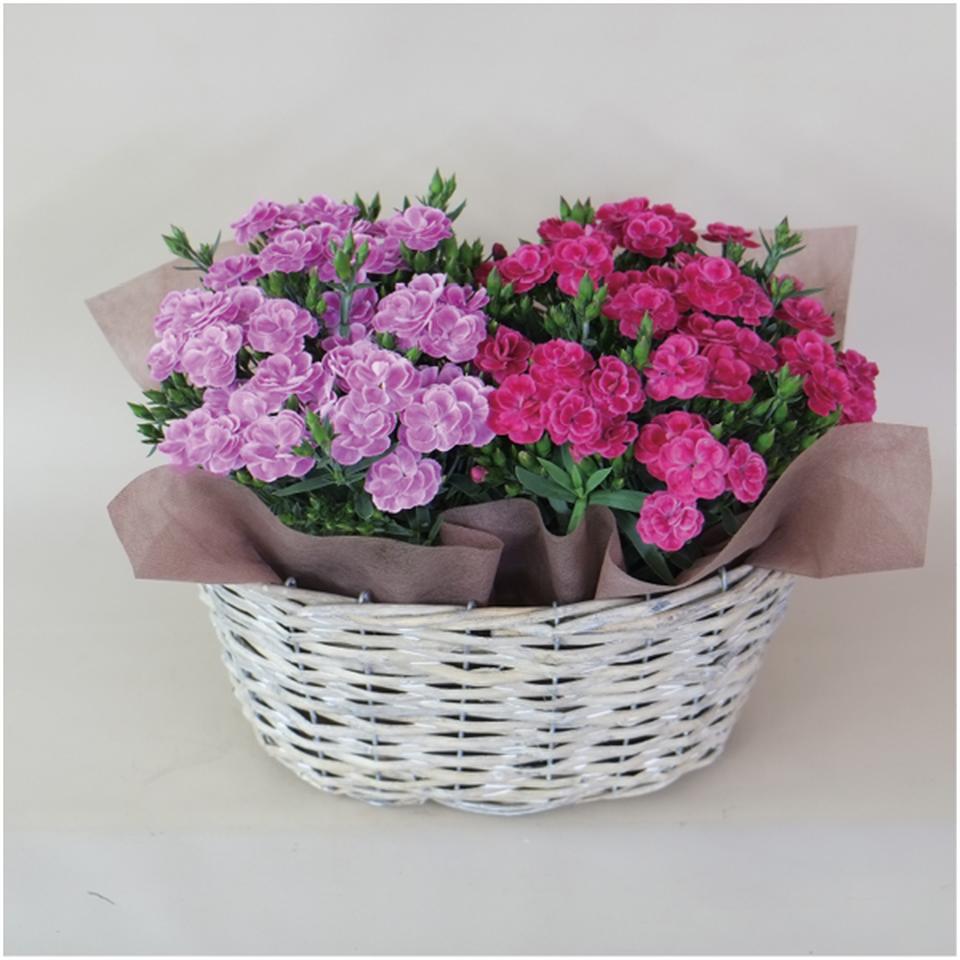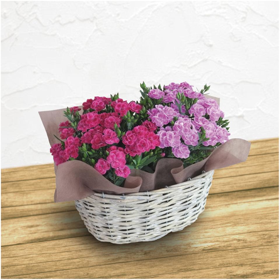 【母の日】日比谷花壇カーネーション「スイーツ」2鉢バスケット(SUSTEE付)