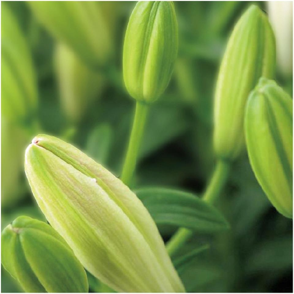 白色の花弁の先にラベンダーピンクの色がのり、とてもポップで元気がでそうな花姿が人気のアジアティックリリー。切り花としても楽しんだり花壇に球根を保管し翌年も楽しむこともできます。