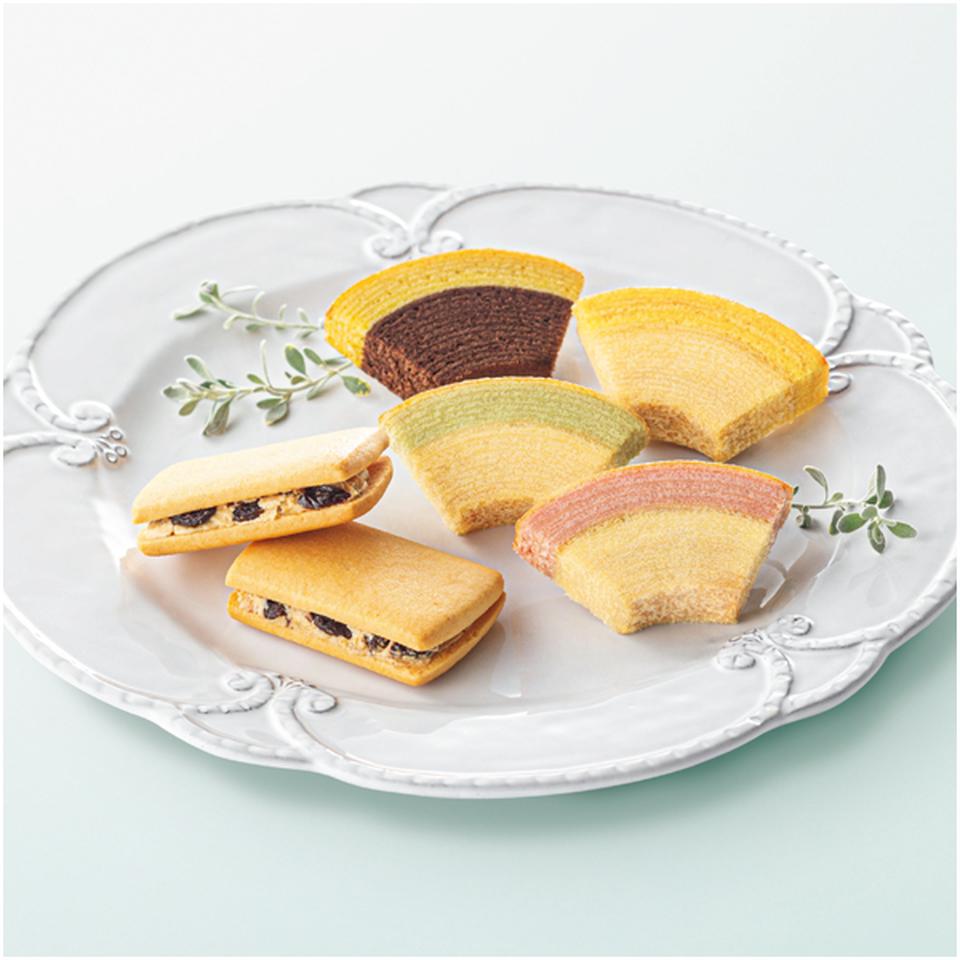 生地に果汁を加え一層一層焼き上げたフルーツクーヘンと、ラム酒の香り漂うレーズンサンドをセットにしました。