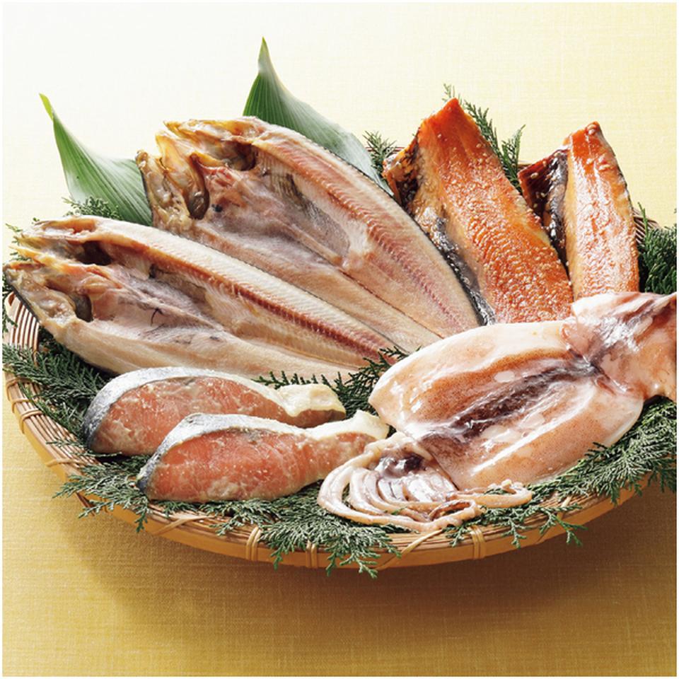 真ほっけ開き150g×2、秋鮭西京漬け70g×2、にしん味醂干し60g×2、開きいか70g