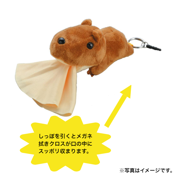 口の中からクロスが出てメガネやスマホが拭けるクリーナー!